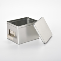 Groothandel Custom Zilver Gerecycled Metaal Moderne Vierkante Geschenkblikken Kleine Kaarthouder Doos Met Offsetdruk Re 180X146X125